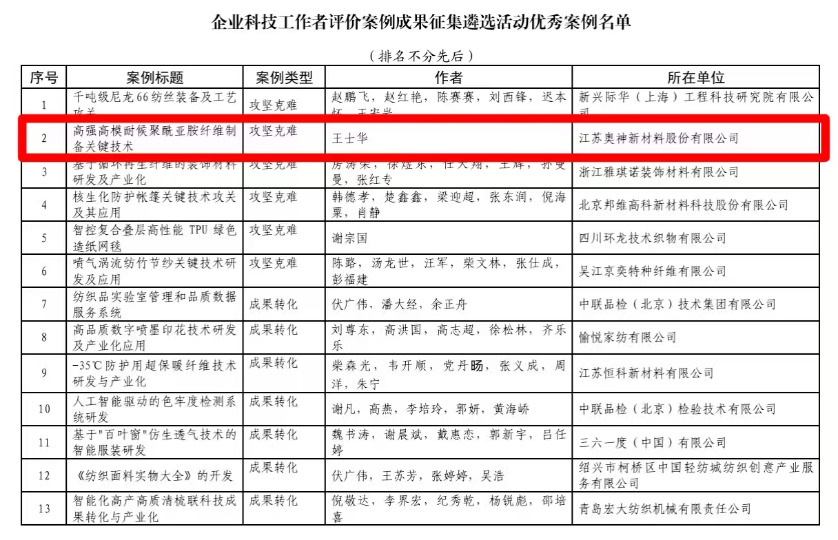 江蘇奧神新材料股份有限公司是一家專業(yè)從事聚酰亞胺高性能纖維及其后道制品的研發(fā)、生產(chǎn)、銷售為一體的國家高新技術(shù)企業(yè),公司擁有全球首條千噸級干法紡聚酰亞胺纖維生產(chǎn)線,項目及產(chǎn)品2014年通過國家級鑒定,“反應(yīng)紡絲”技術(shù)國際領(lǐng)先。